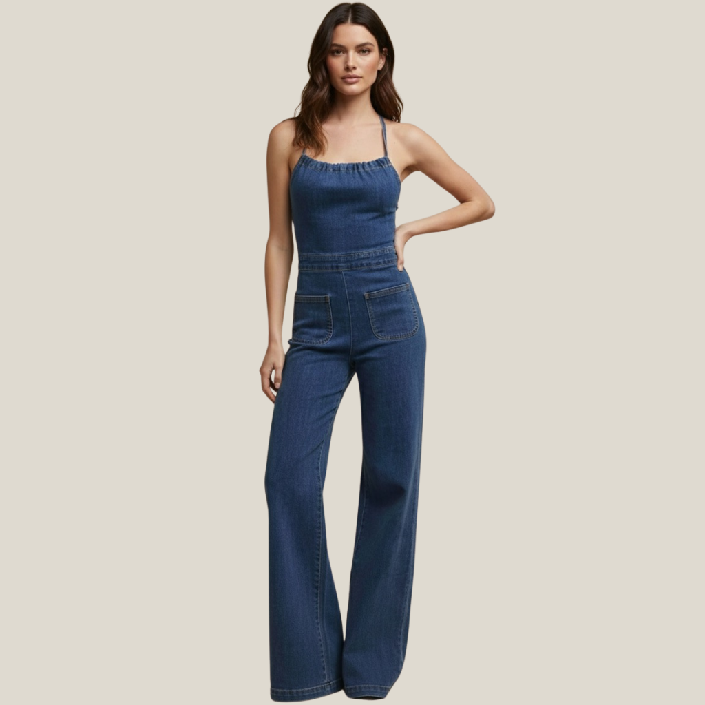 Turn heads with the Flared Denim With Tie Back Jumpsuit — where timeless denim meets modern edge. Designed for the confident woman who loves to stand out, this jumpsuit features flattering flared legs, an open lace-up back, and chic halter-style ties for the perfect fit. The soft, structured denim shapes your figure beautifully while keeping you comfortable all day long. Whether you’re dressing it up with heels or keeping it casual with sneakers, this piece is your go-to for effortless style.